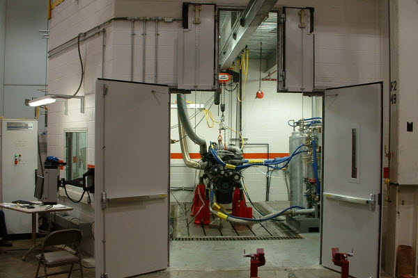 Approximate 10,000 SF engine test cell facility consisting of 4 new test cells, inertia blocks, load bearing masonry walls on spread foundations, structural steel and concrete deck superstructure as well as stairs and miscellaneous roof and wall openings within an existing research facility.